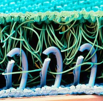 These photographs are from Microcosmos, a book by Brandon Broll, with  extraordinary images of insects, human body parts and everyday objects, magnified between 20 x and 22 million times with a scanning electron microscope