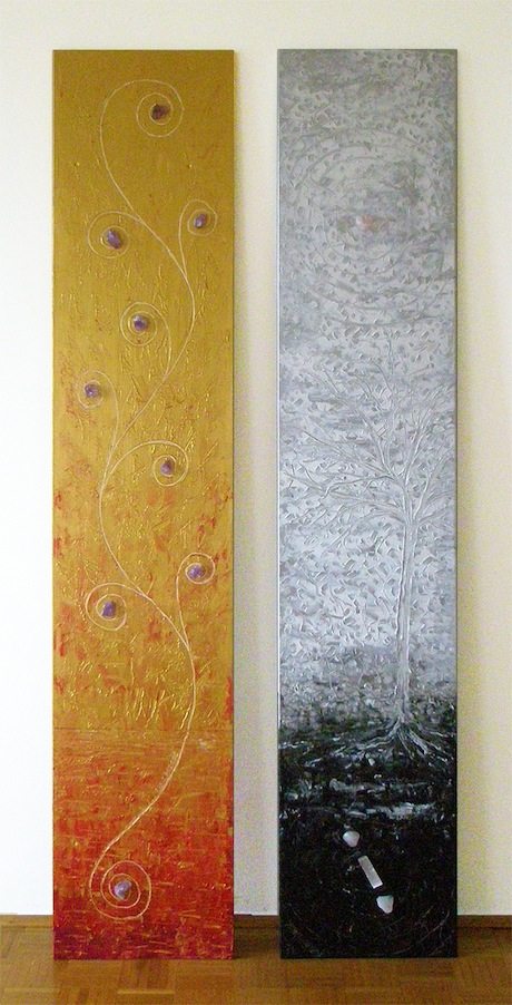 Slika je naslikana na dvije daske, s obje strane oslikane. Ne vješa se na zid već se naslanja na njega. Slike se mogu kombinirati u četiri kombinacije, ovisno o željama ili pak godišnjem dobu. :-)