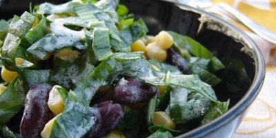 Sastojci: 230 g crvenog graha (iz limenke), 285 g kukuruza šećerca (iz limenke), oveća vezica medvjeđeg luka