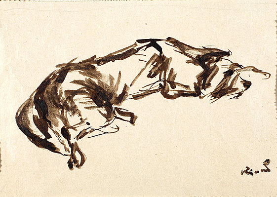 Niz godina provlači se kroz njegove suptilne bakropise motiv teško prepoznatljiva konja, jer se taj motiv razvija od realne vizije do dekorativnog spleta crta.