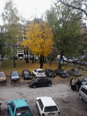 sa mog malog balkona vidim je, kao što vidim i druge... ali u zadnje vrijeme, ona je posebna, jedinstvena, toliko lijepa u toj svojoj osamljenosti biti baš ono što i je - prava osamljena ljepotica ... obojena još malo ovom prekrasnom žutom bojom kasne jeseni, a uskoro će i njeno lišće otpasti pa će se i ona utopiti u izgled ostalih..