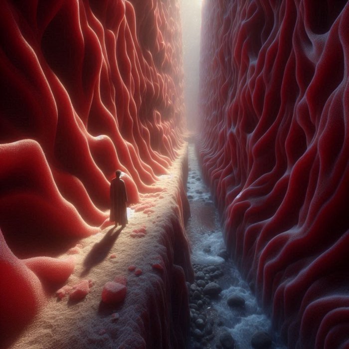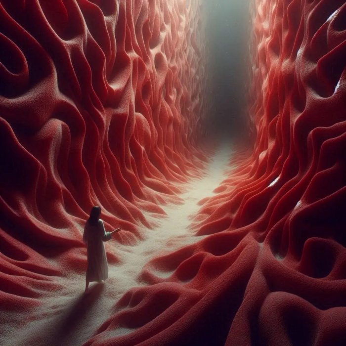 Sanjam noćas nalazim se u rovu, koji nije iskopan u zemlji, nego se probijam kroz rov čije su stranice svježe meso. Čujem njezin glas, gdje je žedna i moli bilo kakvu tekućinu,