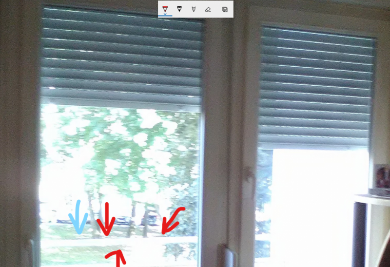 (slika 3 - ove strelice označavaju ogradu balkona u stanu u Gajnicama)