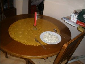 ....kod kuće me dočekao šok! ...postavljen stol s upaljenom svijećom....i skuhana manistra s lososom i kozicama.... mala vještica je kuhala.....sretna što se mama vraća ....nakon bijega iz kuće :-)))