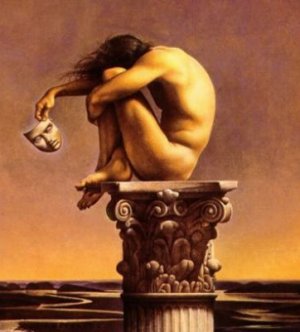 Pobegne iza stalaže. Na kojoj je kineska vaza. Pretpostavimo da se radnja dešava u stanu sa kineskom vazom i sa prostranom terasom. (Doduše, terasa za ovu fabulu nije bitna, ali - nek’ se nađe.)