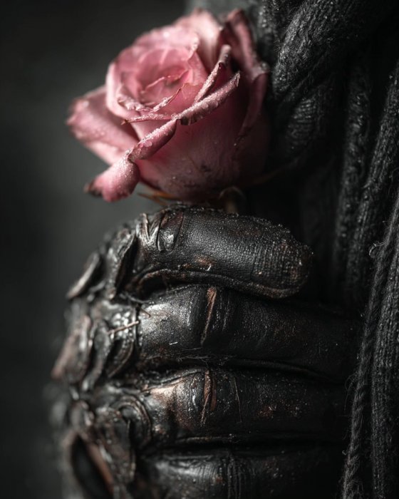 Na kraju puta, dok kleči nad tišinom svijeta, ruka mu se spušta u prašinu. Pronađe mali,cvijet, njegova ruža. Krhka, a ipak tu, posljednji znak njezine prisutnosti. On je podigne, pažljivo, kao što bi nosio vlastitu dušu i u tom trenutku, ruža, ne samo da otvara latice, ona ponovno svjedoči postojanju ljubavi koja je živjela, koja je gorjela i koja sada počiva u tišini.