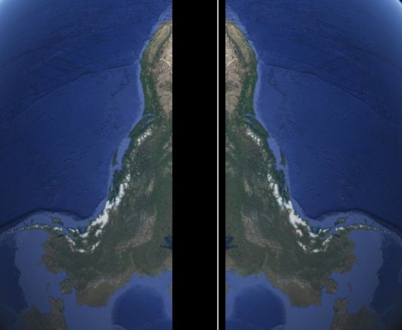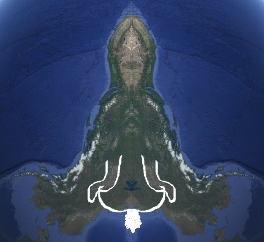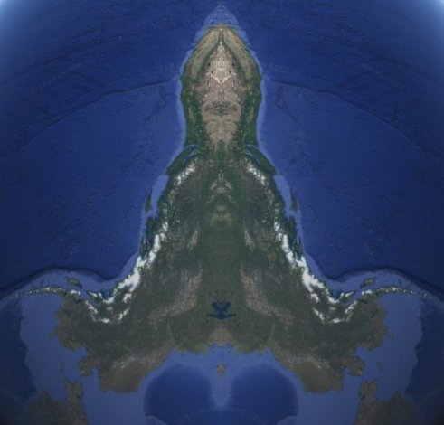 Anđeo koji izlijava čašu u more, originalna polovina i odraz u ogledalu: