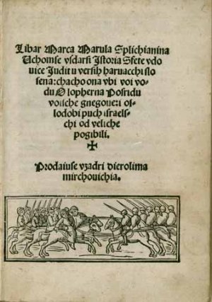 Marulić je i autor prvog djela hrvatske književnosti na narodnome jeziku, pod naslovom Libar Marka Marula Splićanina, u kojem se uzdrži istorija svete udovice Judit, u versi harvacki složena.