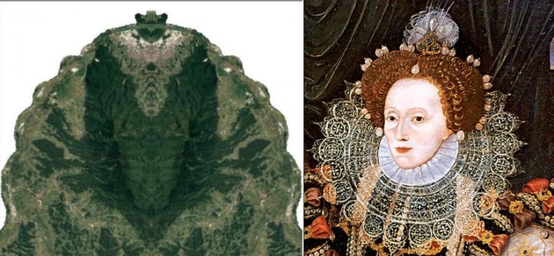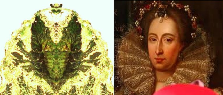Originalna polovina Elizabete I i odraz u ogledalu:
