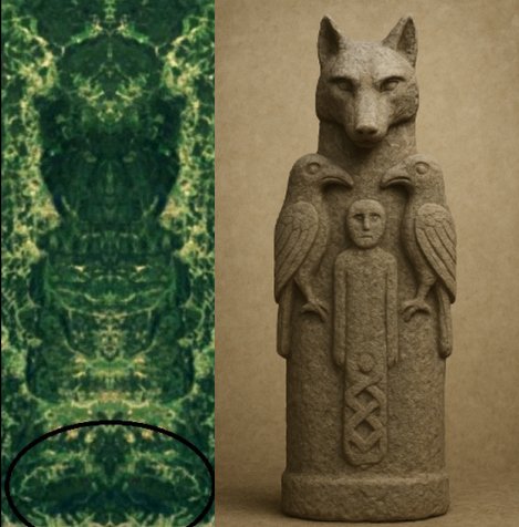 Pronašao sam i sliku Totema vuka sa dvije ptice i usporedio sam dva Totema: