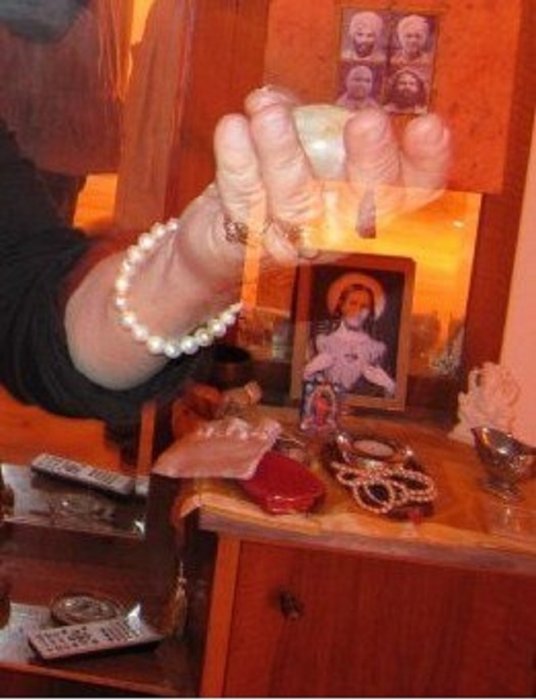 Sada se jasnije vidi da se ruka i Isusova slika preklapaju i prožimaju.. dok sve ostalo na slici izgleda uobičajeno.