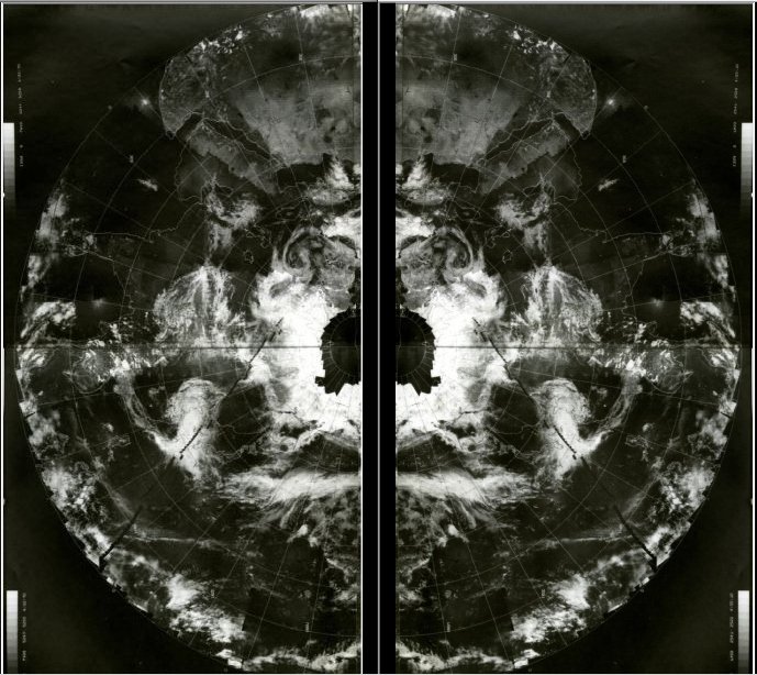 Mapa Zemlje iz 1968. godine rotirana za 180 stepeni (postavljena naglavačke):