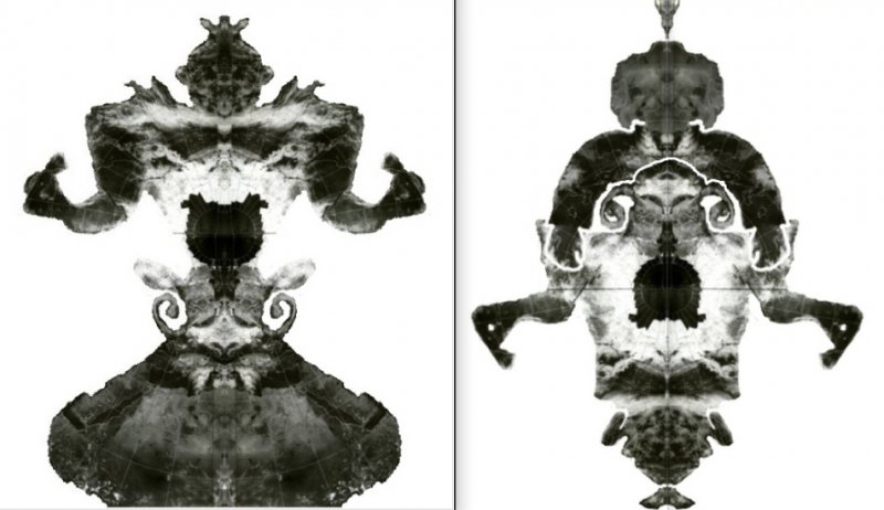 Originalna polovina Zvijeri i žiga Zvijeri i njihov odraz u ogledalu: