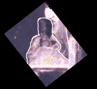 Kad se slika rotira za 180 stepeni, uočava se jasan ljudski lik koji čita veliku knjigu na kojoj je oslikana osmokraka zvijezda.