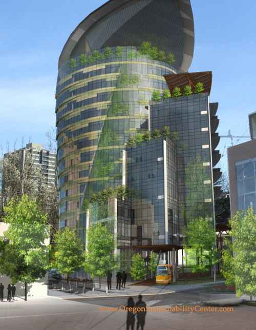 Oregon je svojom brigom za okoliš zaslužio naslov "najzelenije američke države", koji ne misle skoro prepustiti: u Portlandu se gradi prvi neboder koji neće uopće trošiti vodu i struju. Zgrada Oregon Sustainability Center, u kojem će pored ureda organizacije za održivu gradnju biti i dio smještaja za studente oregonskog sveučilišta, gradi se po načelima Living Building Challenge, izazova žive zgrade; kamen temeljac bit će položen prije kraja 2010.
