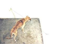Nekoliko dana, 'umjetnik' i posjetioci ove ekzibicije gledali su mučno i sramotno 'remek djelo' temeljeno na psećoj agoniji, sve dok pas nije umro.