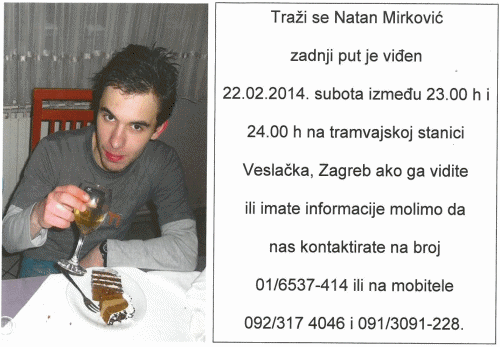 Mladić je nestao u subotu 22.02.2014. u Zagrebu, oko ponoći nakon povratka kući. Gubi mu se svaki trag onog trena kada je izašao iz tramvaja.