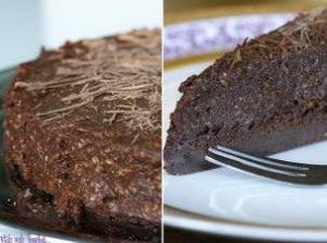 Pećnicu upalite na 150 stupnjeva. Na pari rastopite čokoladu s maslacem. Odvojite žutanjke od bjelanjaka te žutanjke miksajte s vodom dok se ne zapjene. Onda im dodajte šećer i miksajte nekoliko minuta. Dodajte rasopljeni maslac s čokoladom, nastavite miksati pa dodajte i kakao, vanilin šećer i bademe. U bjelanjke dodajte malo soli te ih istucite u čvrsti snijeg. Zatim snijeg žlicom umiješajte u prvu smjesu. Kalup promjera 26 cm namažite maslacem te pospote šećerom u prahu. Izlijte smjesu i pecite oko 45 minuta. Torta bi na površini trebala imati hrskavu koricu, no iznutra bi trebala ostati mekana i sočna. Prije serviranja pospite je šećerom u prahu, a možete je poslužiti i s malo tučenog slatkog vrhnja.