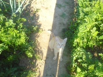 Tek što sam ušla, jedno biće se pojavi, šuškajući iz lišća..I bude uz mene, gotovo da ne mogu raditi od njega..Pa ga moram strpljivo gurati u stranu..Mačak Petrica...