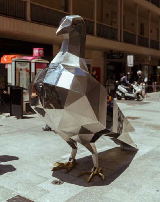 I konačno postoji I još jedna skulptura postavljena nedavno, čini mi se 2020 godine, skulptura GOLUBA koja je velika negdje oko 2 metra postavljena na kutu Malla I Gawler placea rad Paula Sloana za kojeg je on dobio negdje oko 180 tisuća dolara.