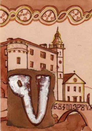 Slovo glagoljice je pridruženo početnom slovu latiničnog naziva zastupljenog grada ili motiva.