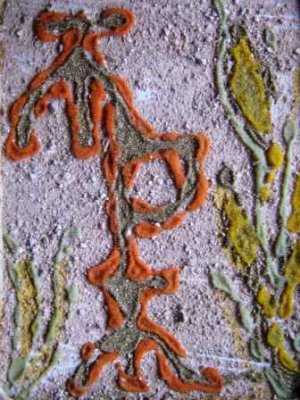 Slova glagoljice i imena, “Petar”, pjeskarena podloga, kombinirana tehnika, ( 20 x 18 cm ), 2006.