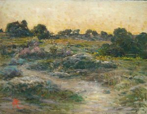 Vrativši se na rodni Pelješac, sve je više zaokupljen krajolikom. Slika velika platna blještava kolorita pod identičnim nazivima Vrijes ili Pelješki pejsaž.