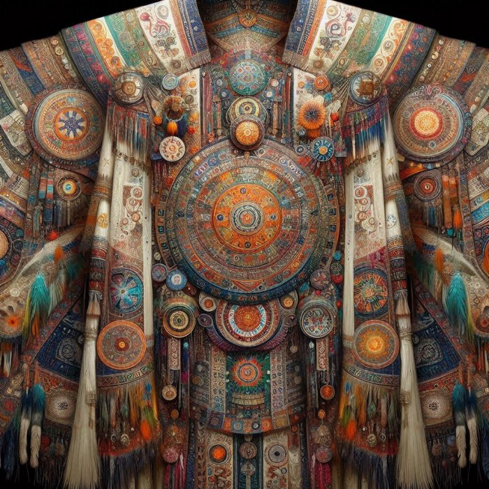 Odjeća sama po sebi predstavlja religiozni mikrokozmos. S jedne strane, ona čini gotovo potpun simbolički sistem,a s druge, ona je posvećenjem prožeta brojnim duhovnim silama (može je nositi samo onaj koji zna obozdati njene duhove ).