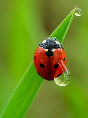 bubamara, rosa, kapljice, vlat, travka, jutro, svježina, sreća