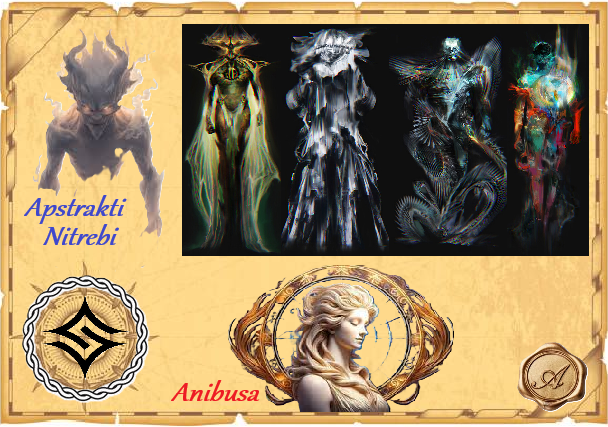 Apstrakti su zapravo Stvorenja koja nisu rođena već, doista, stvorena Dialanovim Izborom ... Apstrakti nisu prizvani te su zapravo 'ono što nije izbrisano' Dialanovom voljom. Međutim, ta Stvorenja kao da su jednostavno ostala zaglavljena između 'da' i 'ne'. Nemaju stalno obličje, ali to njihovo 'nerealno' obličje ipak se može opisati - to su Siluete koje kasne za vlastitim pokretima, promjenjiva lica i tijela izgrađenog od pogrešnih inačica 'istog bića'. Jednostavno, istodobno su živi i mrtvi, ali nikada rođeni.