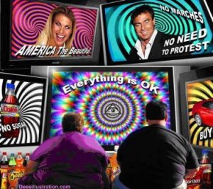 Što je ili tko onda Bog u ime kojeg se ratuje i vlada? On, ona ili ono jest arhetip ili praslika. Bog, strah i novac vladaju svijetom, a s obzirom da je svijet pao u ruke zlu, ono mora sebe prikriti i opravdati. Ponavljam – nepostojeći Bog, zastrašivanje i ekonomska mašinerija vladaju svijetom. Da bi takva situacija ostala neprimijećenom, skrivenom ili čak prodana pod nešto prirodno, ljudima moraju biti oduzeti argumenti, percepcija ugašena, želja za pobunom ugušena. Kontrolom fizičkim zlostavljanjem, vidjeli smo u dosadašnjoj povijesti, to se ne može postići, ali može se kontrolom uma. Na koji način? Upotrebom „Boga“ kao izvanjske sile, a zatim novcem i zastrašivanjem. Prava istina koju se ne usude izreći čak niti mnogi „teoretičari zavjera“ jest da na ovoj planeti vlada velika laž, a tko joj se suprotstavi stradat će, na ovaj ili onaj način. Na primjer, iako je jedan Bill Clinton uspio o sebi stvoriti sliku kao o duhovitoj, pomalo šašavoj i otkačenoj - čitaj „benignoj“ - predsjedničkoj figuri, bračni par Clinton iza vlastite vladavine ostavio je najmanje pedeset leševa osoba koje su im se suprotstavljale. Dok narod gleda utakmice, pije pivo i raspravlja o najnovijem Big Brother Show-u, svjetski vladari nemilosrdno i beskrupulozno vuku konce onako kako žele. U tome im svesrdno pomažu mediji – dimna zavjesa kojom se prikriva ili zamućuje istina.
