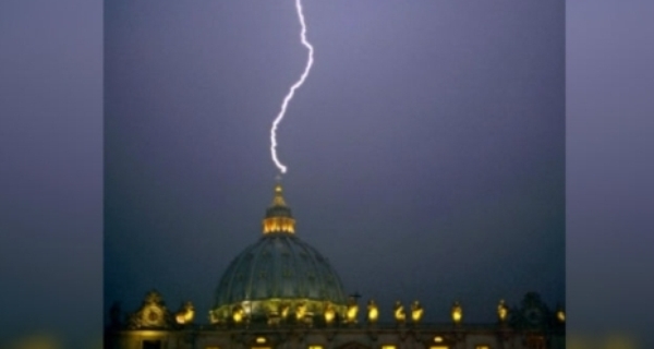 Nakon što je papa Benedikt XVI. najavio svoje povlačenje društvenim mrežama velikom se brzinom proširila jedna neobična fotografija. Naime, u ponedjeljak je u Vatikanu iznad bazilike Sv. Petra snimljena munja koja udara u sam njen vrh. Fotografiju je objavio AFP.